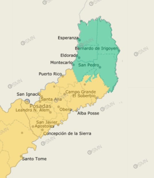 Dicha alerta meteorológica regirá para la tarde y la noche de este sábado 27 de septiembre en las zonas Sur y Centro de la provincia, concretamente en los departamentos Capital -que incluye a Posadas Garupá-, Candelaria, Libertador General San Martín, San Ignacio, 25 de Mayo, Apóstoles, Cainguás, Concepción, Leandro N. Alem, Oberá, San Javier y Sur de Guaraní.