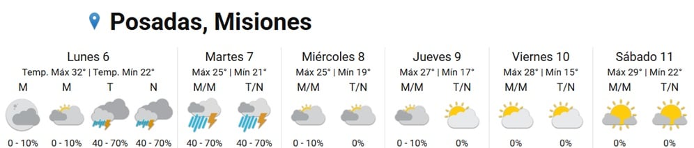 Según el pronóstico, las primeras precipitaciones comenzarán a registrarse en Misiones durante la tarde y noche del lunes, pero el evento más significativo se espera para el martes 7 de abril, cuando el sistema alcance su mayor intensidad.