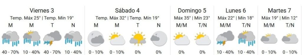Pero la tregua del mal tiempo será breve, ya que para el lunes 6 de octubre se prevé el regreso de tormentas en la provincia.