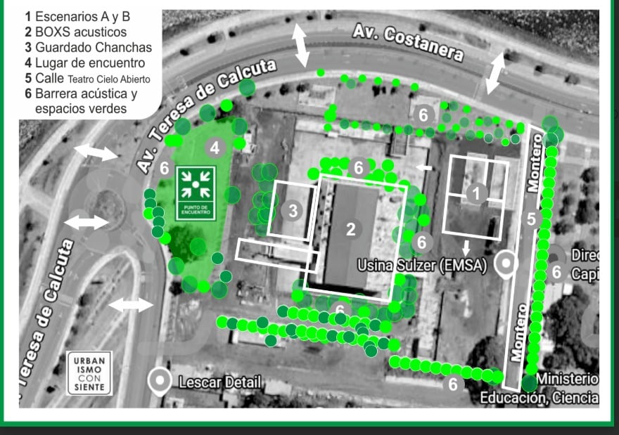 La arquitecta describió cómo serían estas estructuras. “Los boxes acústicos son cubos, tipo como unas salas de ensayo. Eso mismo, tratados acústicamente desde lo sonoro. Esto se tiene que hablar con ingenieros de música, con gente que realmente sepa del tema y en eso estamos”, precisó. Asimismo, mencionó que el proyecto también contempla una barrera verde y un tratamiento acústico general en el edificio para contener el sonido.